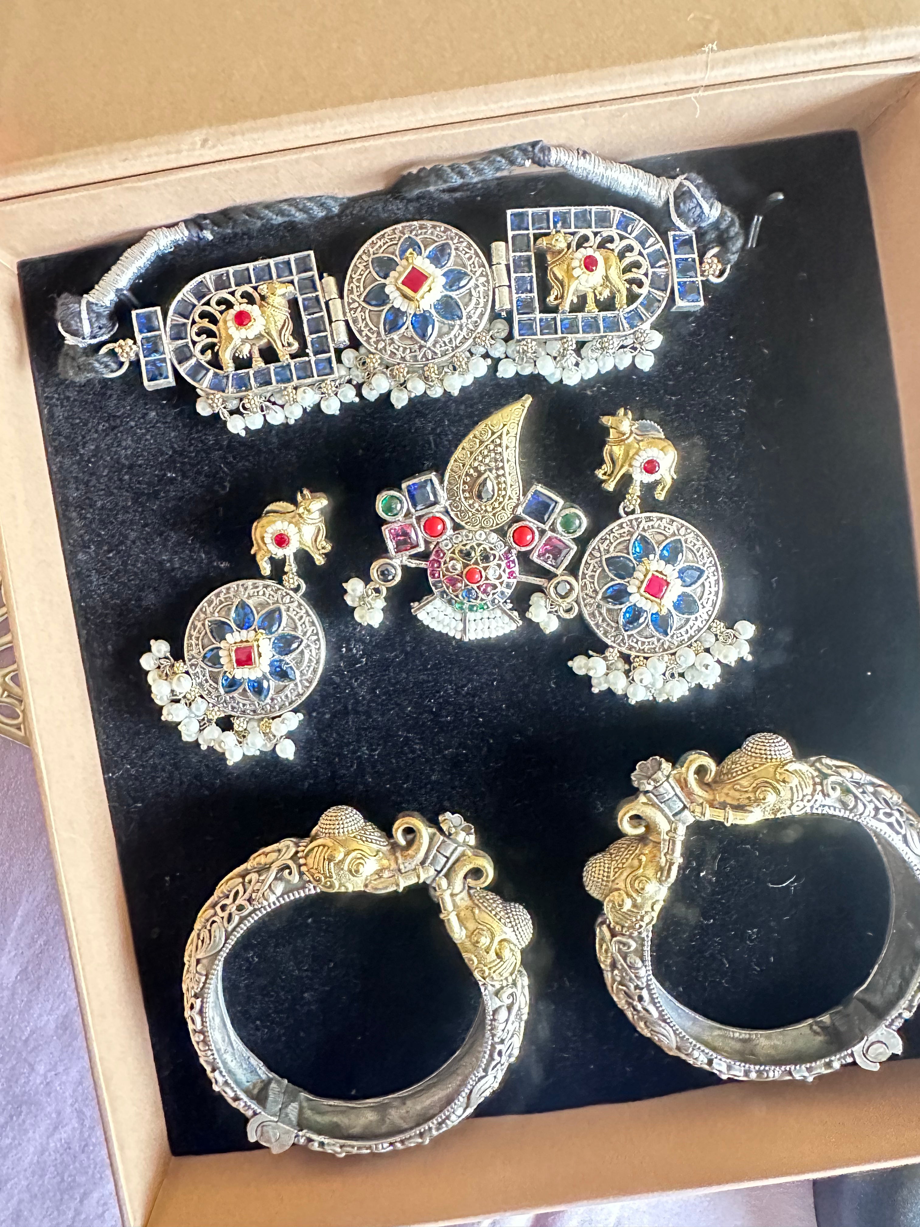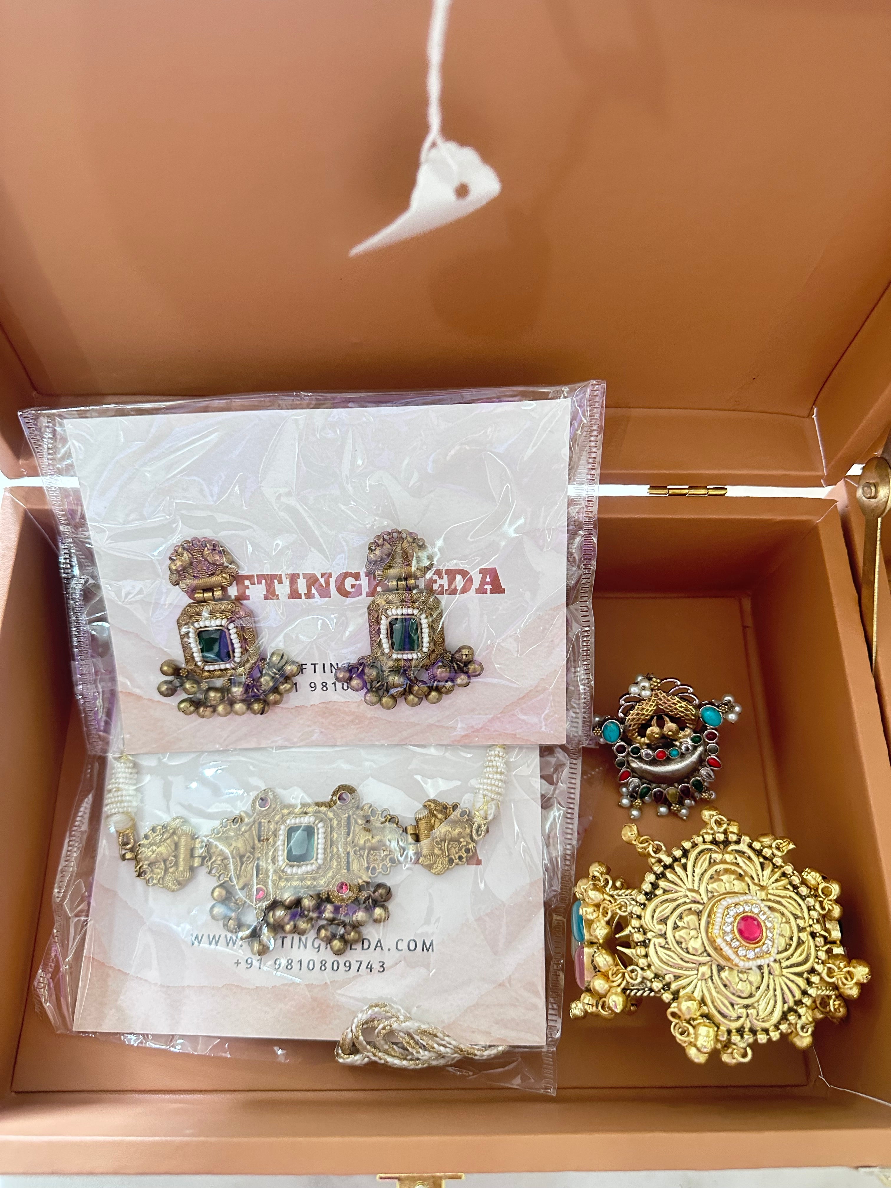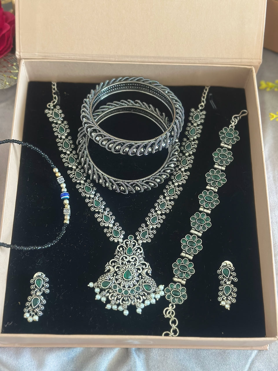 Dark Green *Curated Jewellery Gift Hampers* - oxidised jewellery with Kadda and anklet